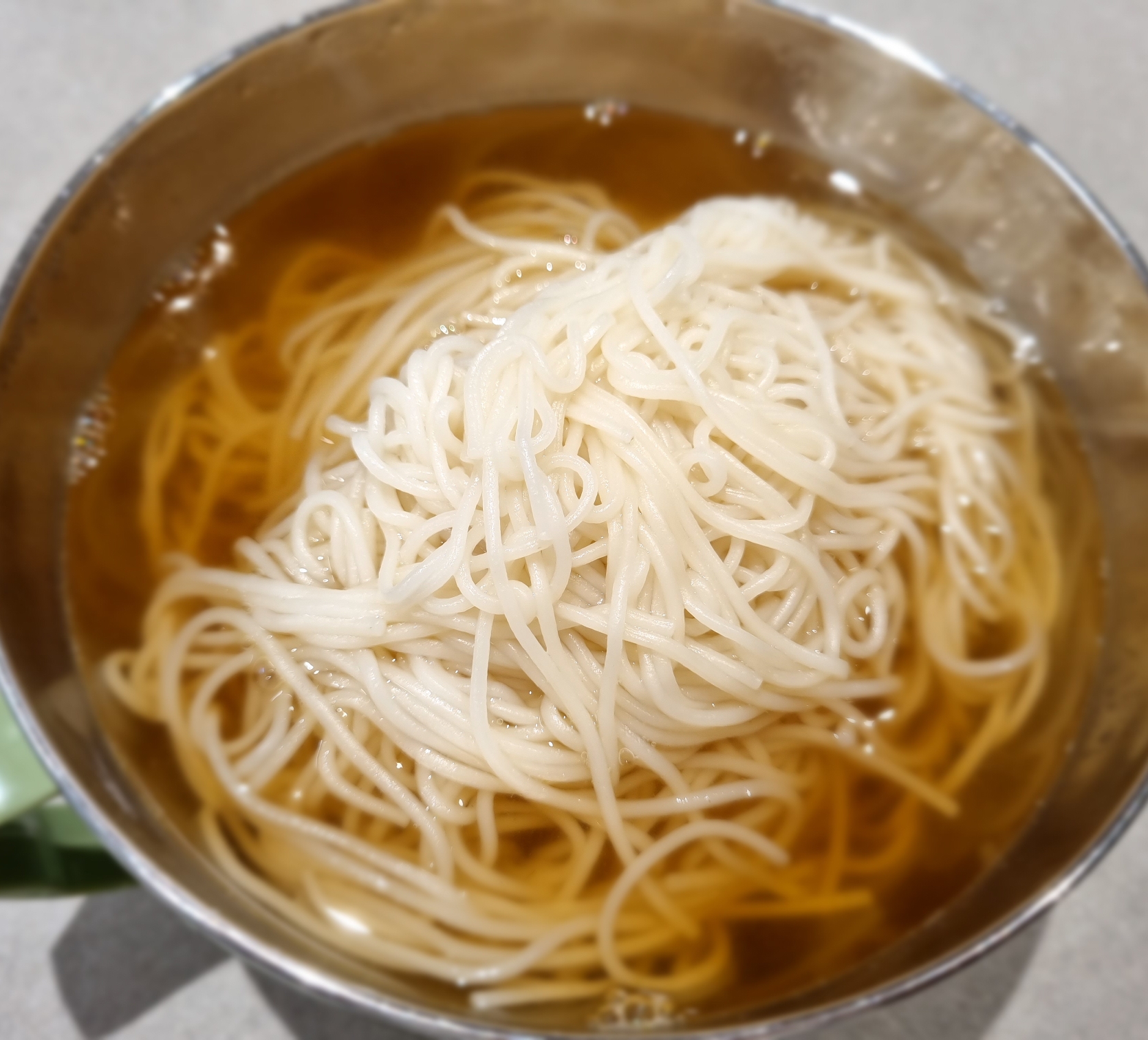 강불 ㅡ 소근 한꼬집 넣고 물이 끓으면 소면을 넣어준다.(4-5분)